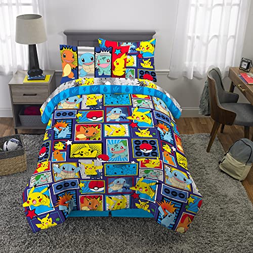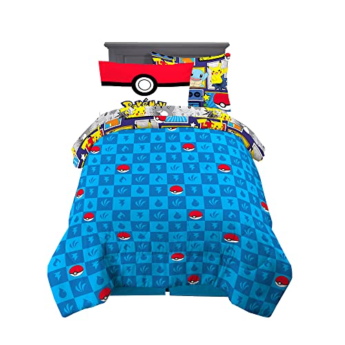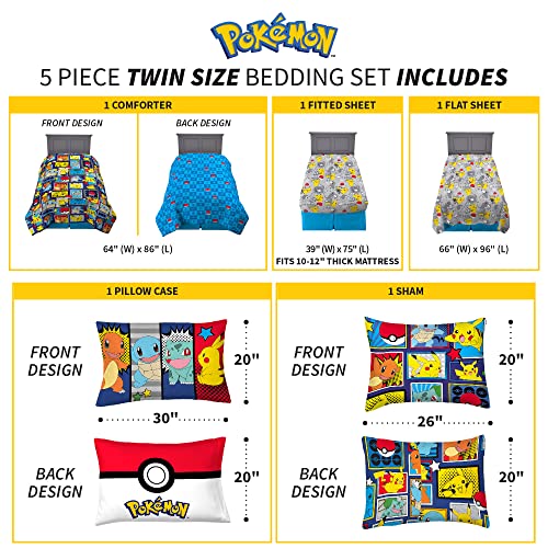 Franco Kids Bedding Super Soft Comforter and Sheet Set with Sham, 5 Piece Twin Size, Pokemon