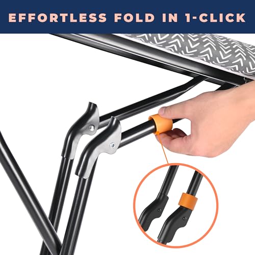 EASY FOLDING Easy One-Click on Folding: Fold the ironing board effortlessly with just one click on—no bending or heavy lifting required. Transforms right into a compact hanger for quick and trouble-free storage.