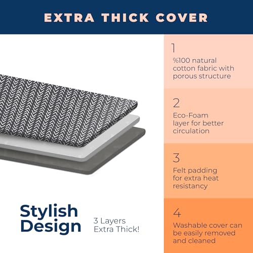 EXTRA THICK 4-LAYER BOARD COVER PAD Last Sturdiness Easy Ironing: 4-layer ironinh board cowl with a mixture of froth, felt, and fabric ensures clean ironing with out sticking The extra thick 100% cotton Heat-resistant floor helps to maintain garments Safe.