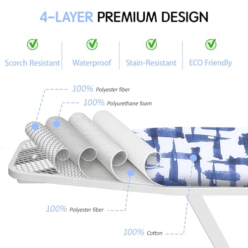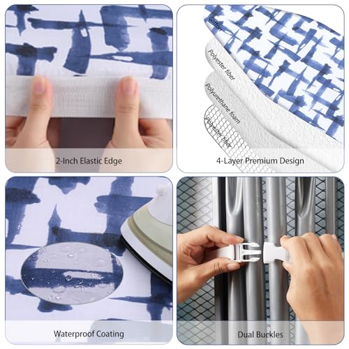 Ironing Board Cover and pad – 15 x 54 Thick Padding 4 Layers with 2″ Elastic, Stain Resistant & Durable Scorch, 2 Click Buckles for Smooth Iron/Easy Installation in Laundry Room, Blue Brushstrokes