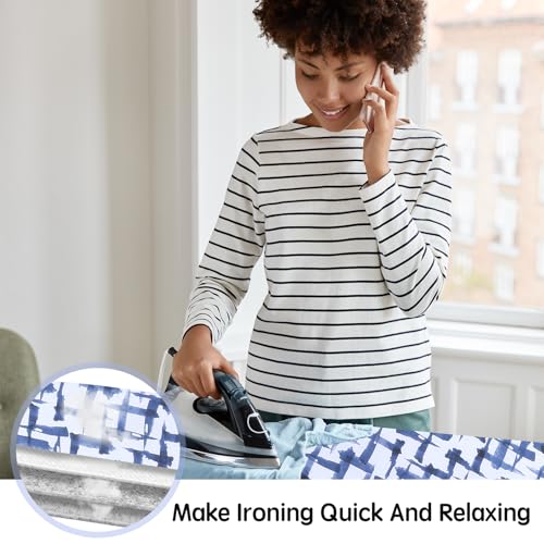Specification: Ironing Board Cover and pad – 15 x 54 Thick Padding 4 Layers with 2″ Elastic, Stain Resistant & Durable Scorch, 2 Click Buckles for Smooth Iron/Easy Installation in Laundry Room, Blue Brushstrokes