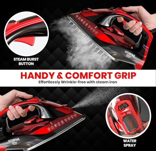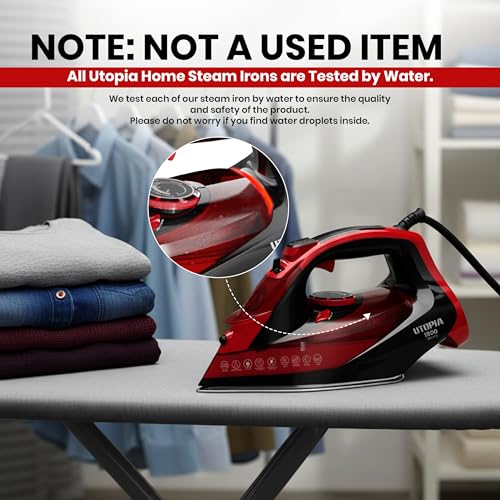 Utopia Home Steam Iron for Clothes – Non-Stick Soleplate – 1800W Clothes Iron With Auto-Off Safety Feature – Adjustable Thermostat Control, Variable Steam Control, Self-Clean, 8 Feet Cord (Black/Red)